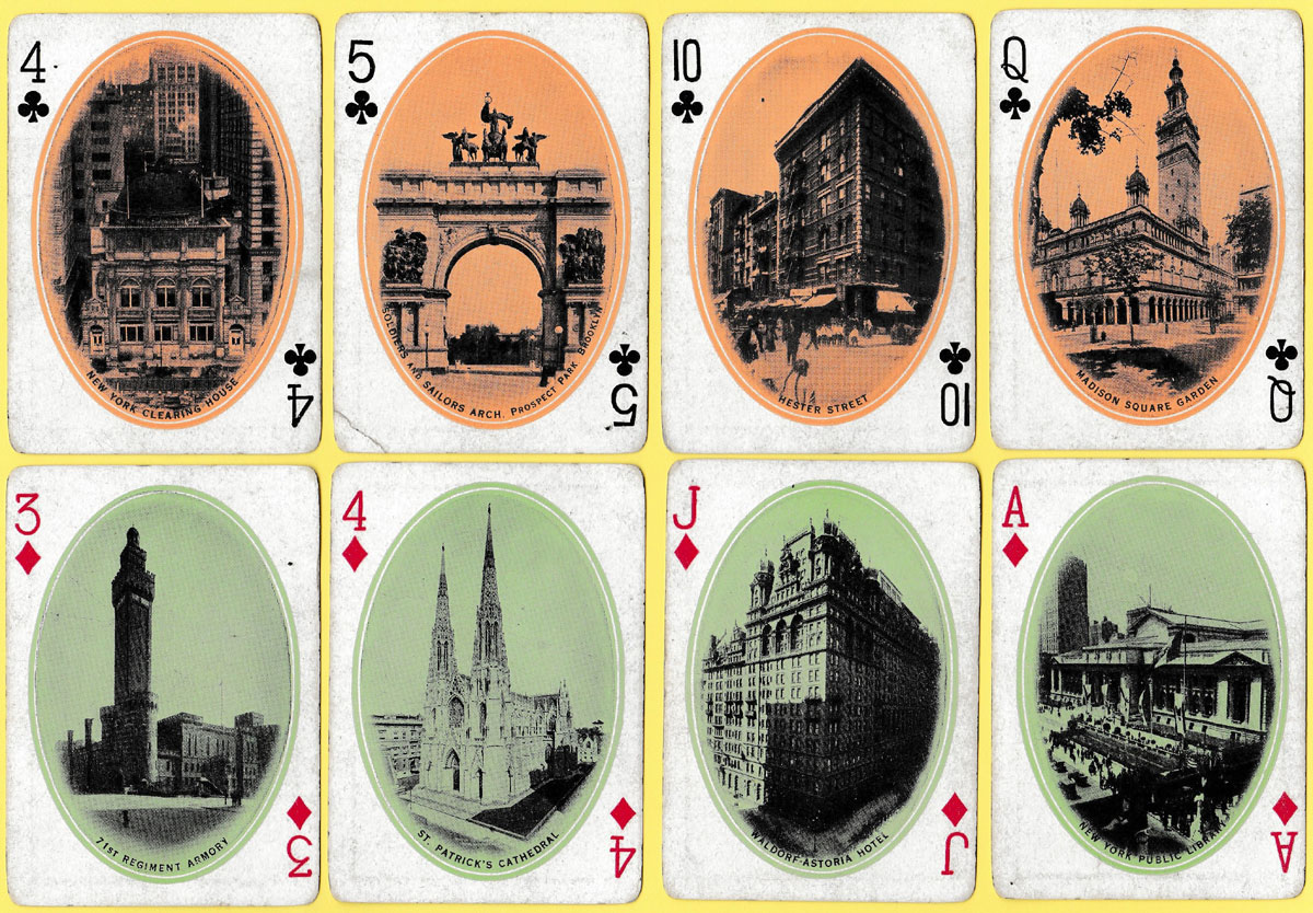 Above: New York City souvenir playing cards published by the United States Playing Card Company, USA, 1915.