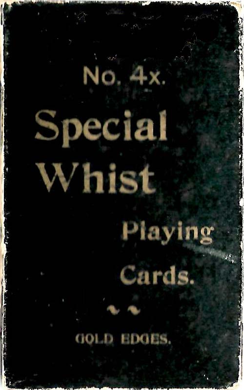No.4 Special Whist (‘American Skat’) playing cards made by the Russell & Morgan Printing Company, Cincinnati, 1889. In the late 19th century the game of Skat was apparently popular with German immigrants. Eventually the game of Whist began to supersede Skat. The problem was that Skat is played with a deck of either 32 or 36 cards while Whist is played with 52 cards. This deck appears to be an effort to satisfy the devotees of both games. It was discontinued after 1901. See the Box►