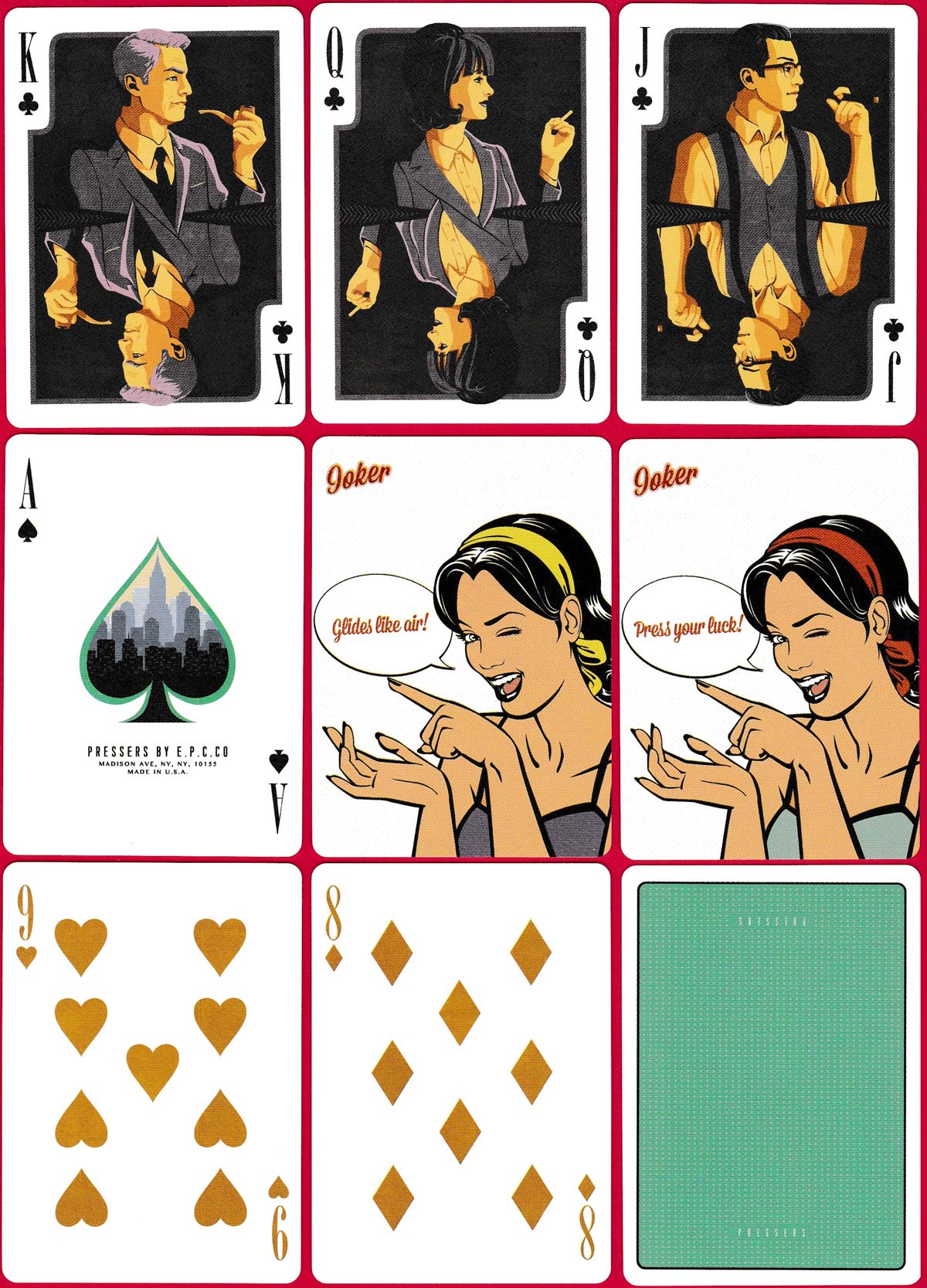 Pressers playing cards with illustrations by Aaron Johnson printed by USPCC for Ellusionist in 2014.