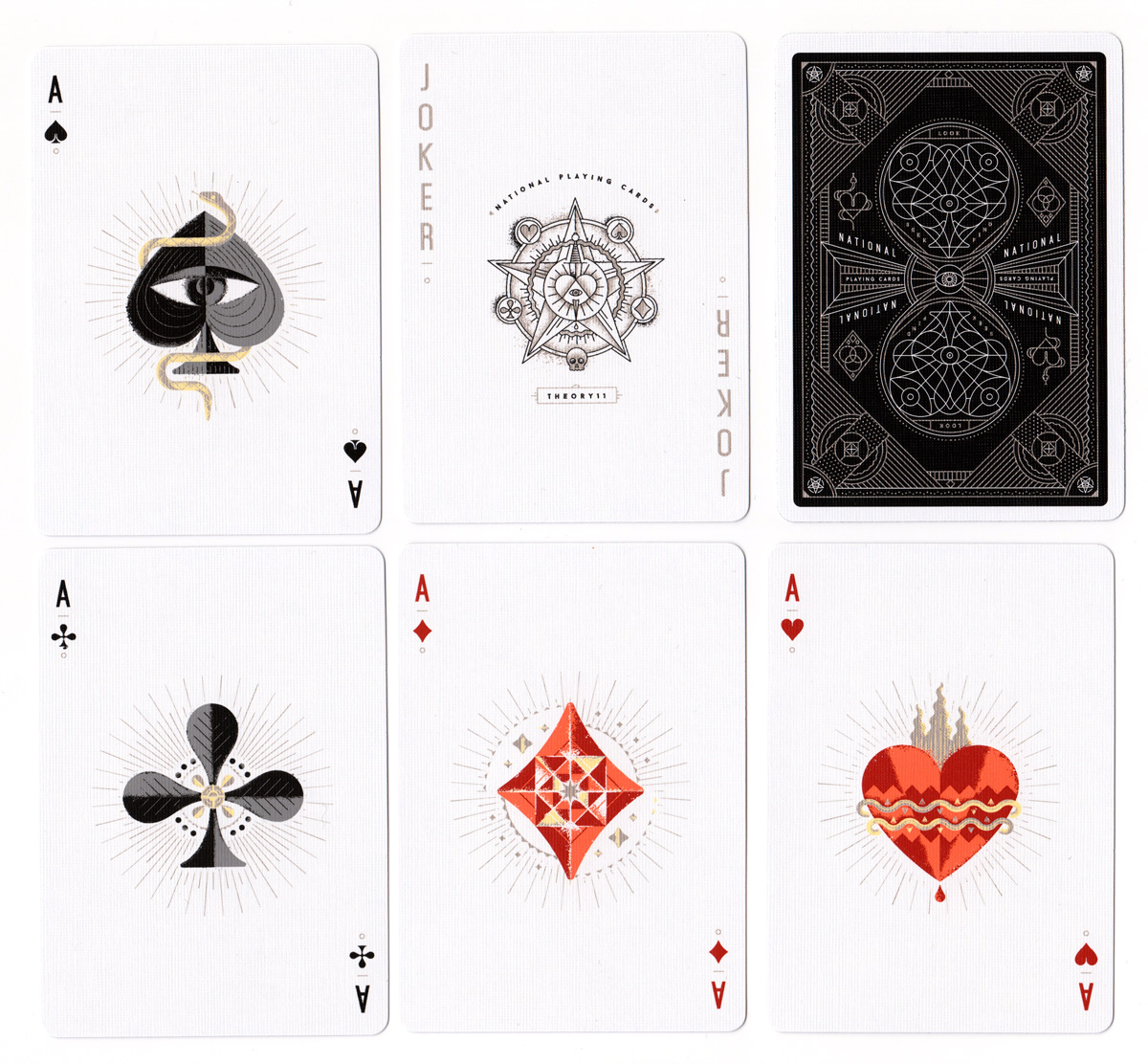 Playing cards inspired by mysterious symbolism of secret societies as well as a tribute to the National Playing Card Co.
