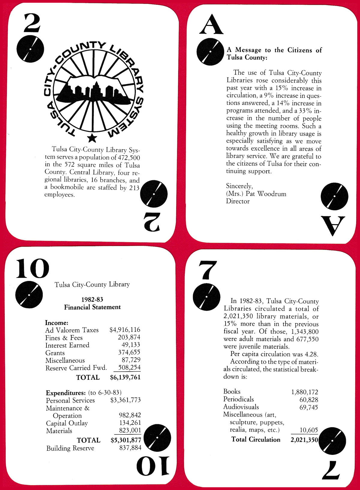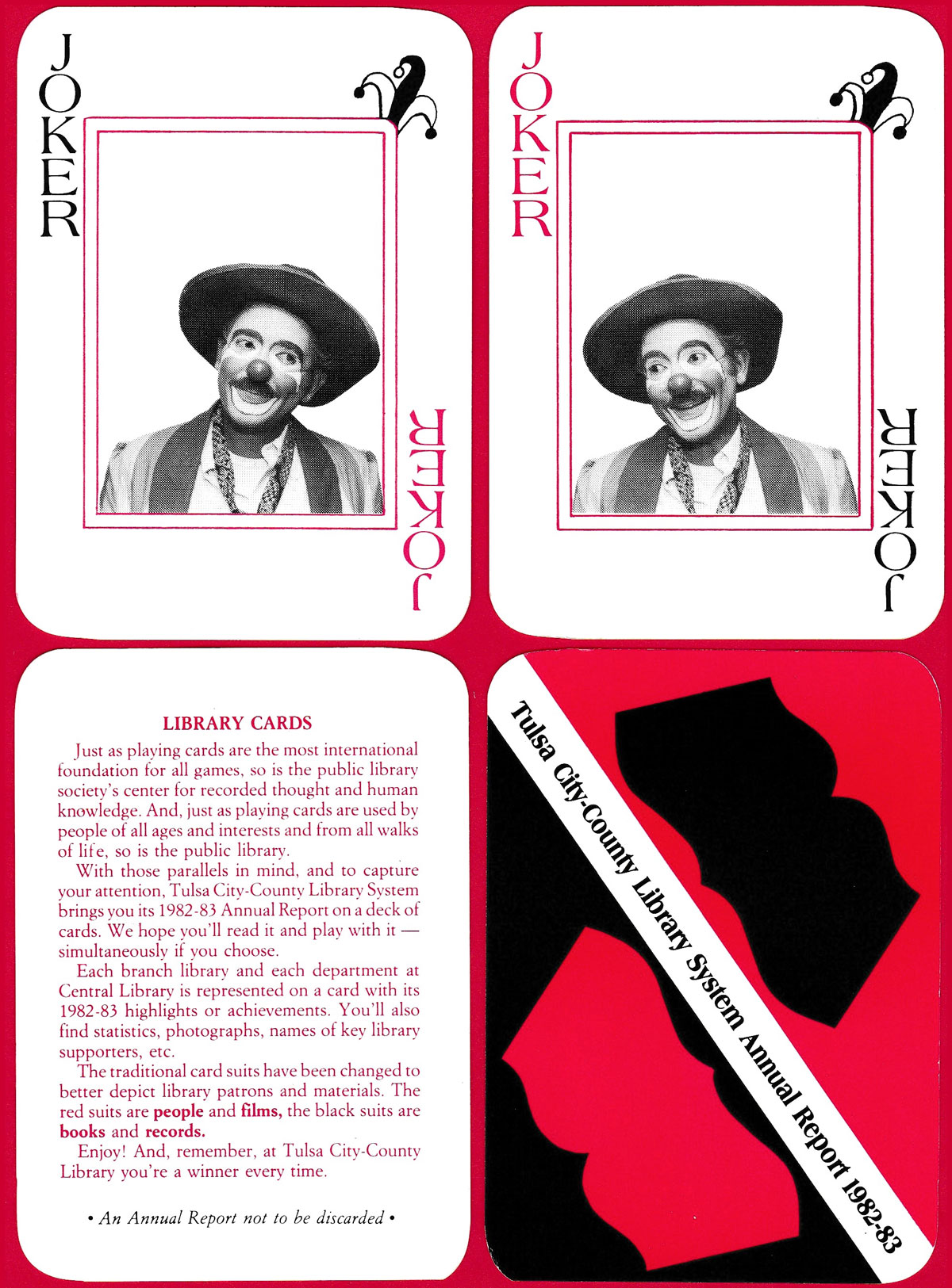 Tulsa City-County Library System Annual Report playing cards, USA, 1983.