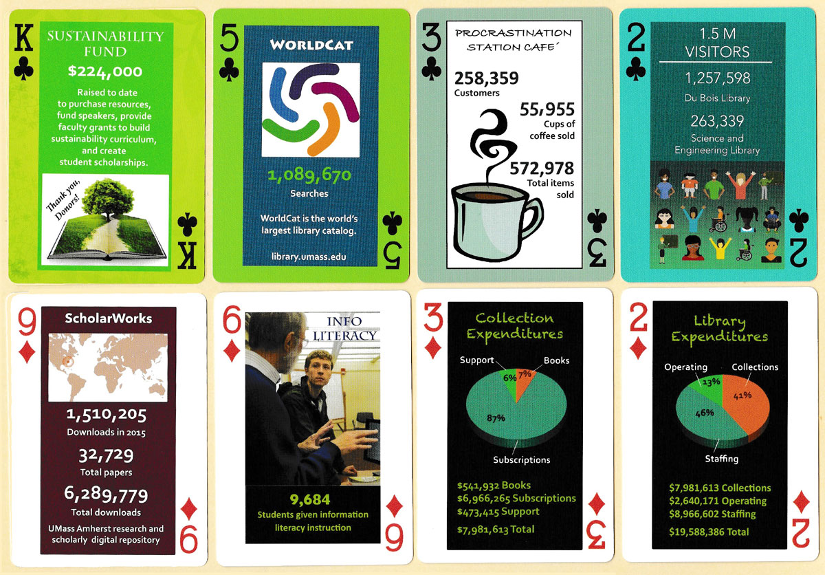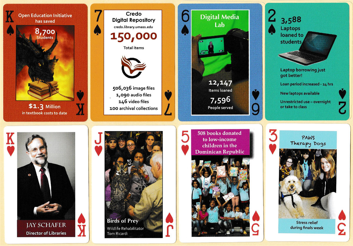 Above: UMass Amherst Libraries playing cards produced by the University of Massachusetts, Amherst Libraries, 2016.
