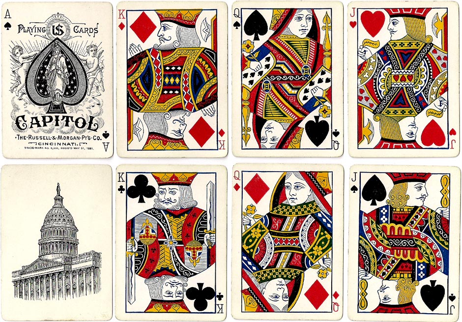 “Capitol #188” brand playing cards manufactured by Russell & Morgan Printing Co., Cincinnati, c.1886