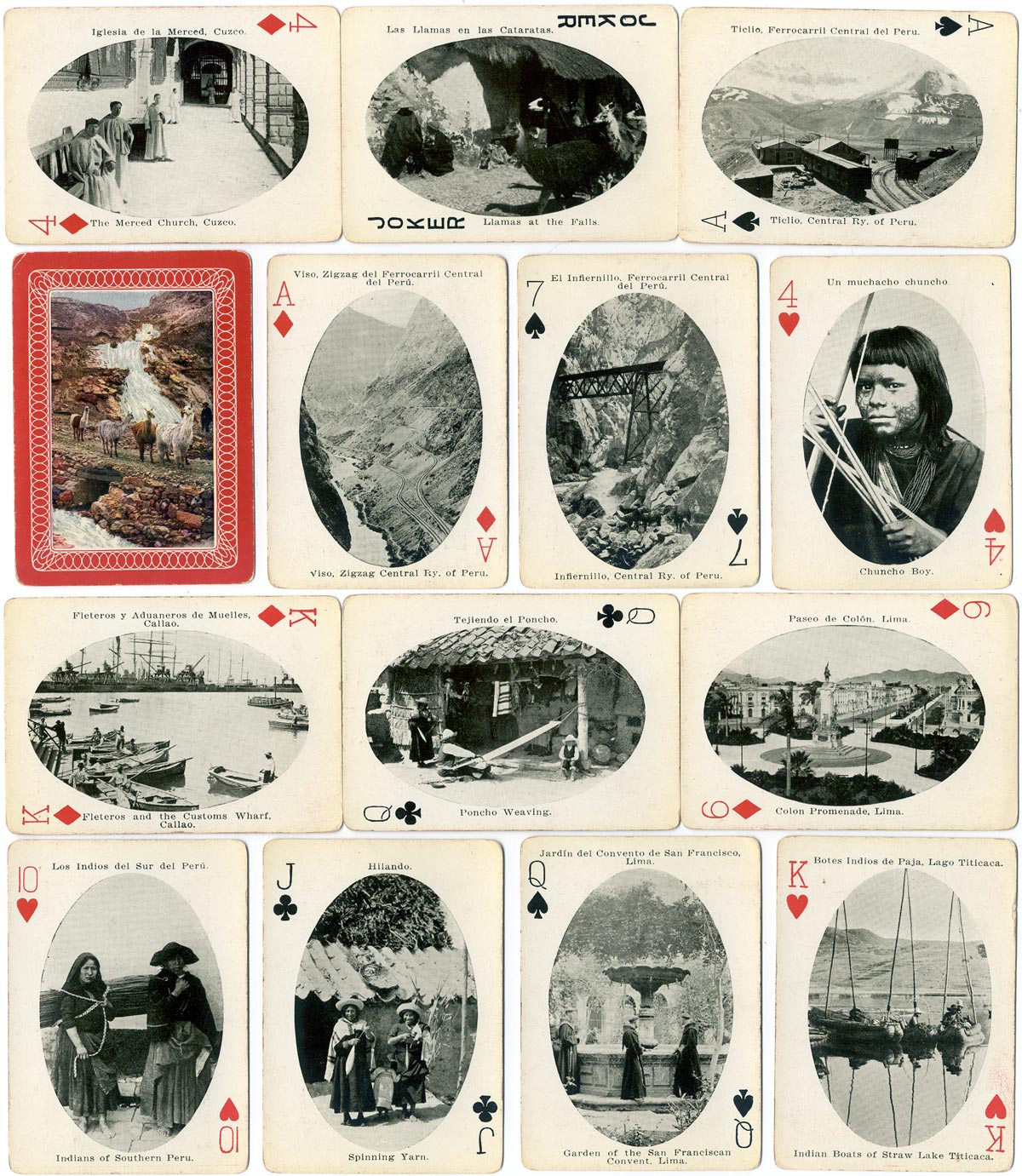 See also: Recuerdo del Centenario - Vistas de Lima Souvenir of Peru playing cards made by Standard Playing Card Co., Chicago, c.1910.