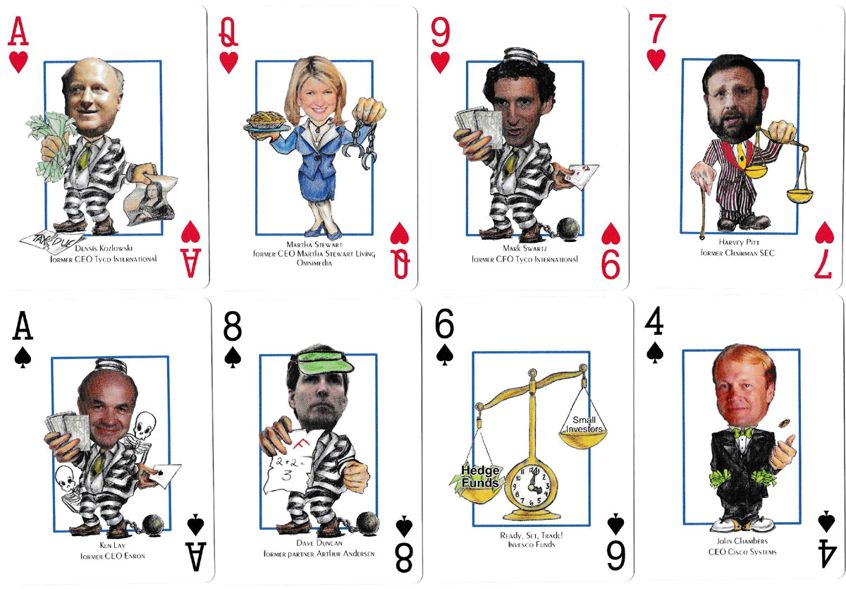 “Wall Street Most Wanted” playing cards, USA, 2003.