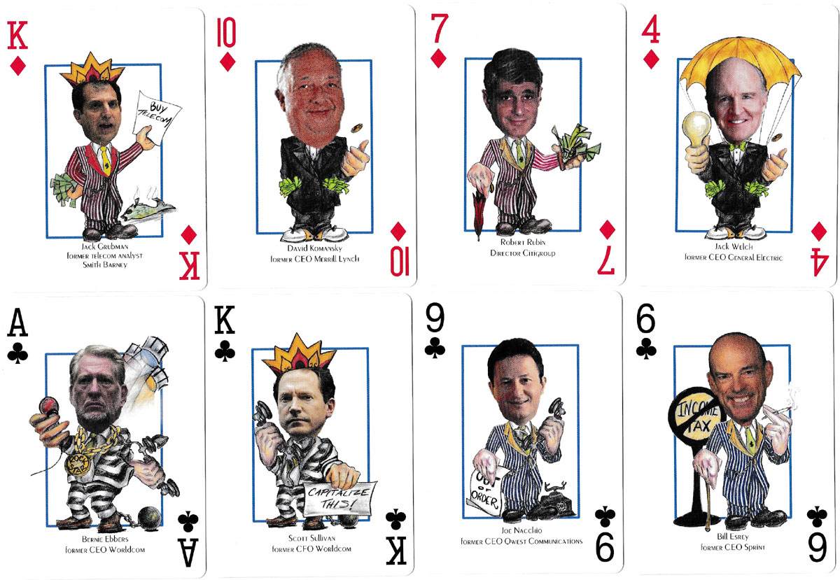 “Stacked Deck” business caricature playing cards, USA, c. 2003.