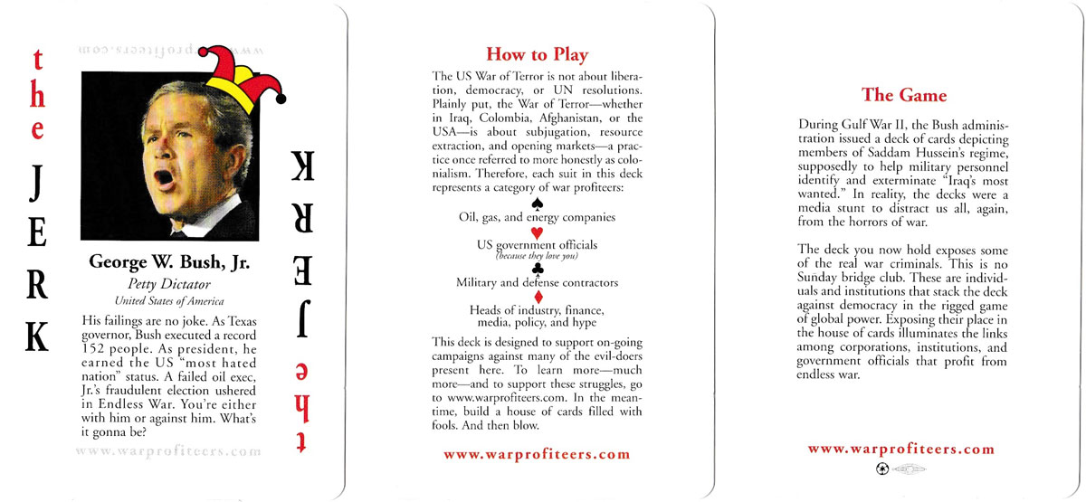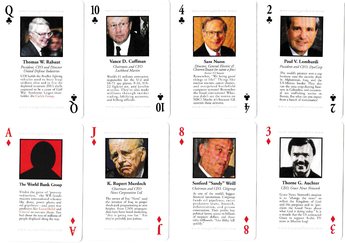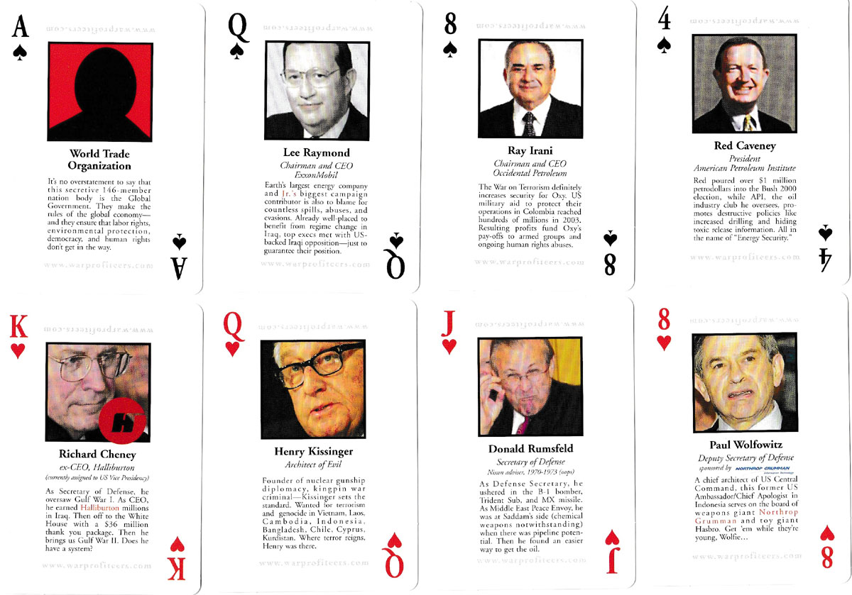Above: “War Profiteers” playing cards, USA, c. 2004.